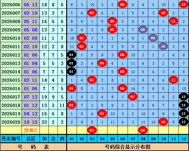 后区第二位:上期该位开出号码12,为重号,前7期该位区分遗漏:1期、6期、1期、10期、0期、0期、0期,其中冷温热号码个数比为1:1:5,冷码出现较少,本期选藏冷码解冻,参考冷码08。
