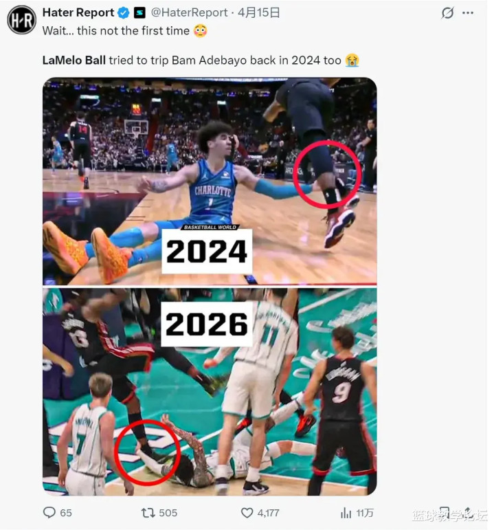 黄蜂和热火的附加赛,第二节刚驱动,三球被封盖倒地之后,拉拽阿德巴约的脚部,导致后者受伤离场。最终黄蜂127-126,将热火淘汰出局。黄蜂将在4月18日上昼7点半对阵魔术,争夺东部临了一个季后赛限额,三球届时大要出战。