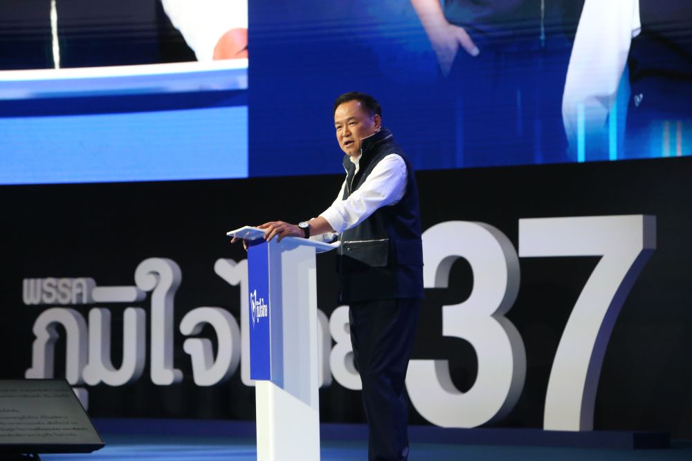 2月6日,泰国看守总理、自豪泰党总理候选人阿努廷在曼谷诗丽吉王后国家会议中心发表竞选演讲。新华社发(拉亨摄)
