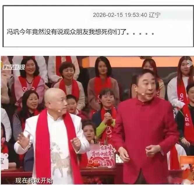 冯巩上台,那句经典的“我思死你们了”也没说,总以为心里空落落的