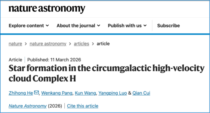 3月11日,封面新闻记者获悉,这项要紧着力由西华师范大学科研团队发现,并以Starformationinthecircumgalactichigh-velocitycloudComplexH为题,在海外巨擘学术期刊NatureAstronomy(《当然·天文体》)发表。