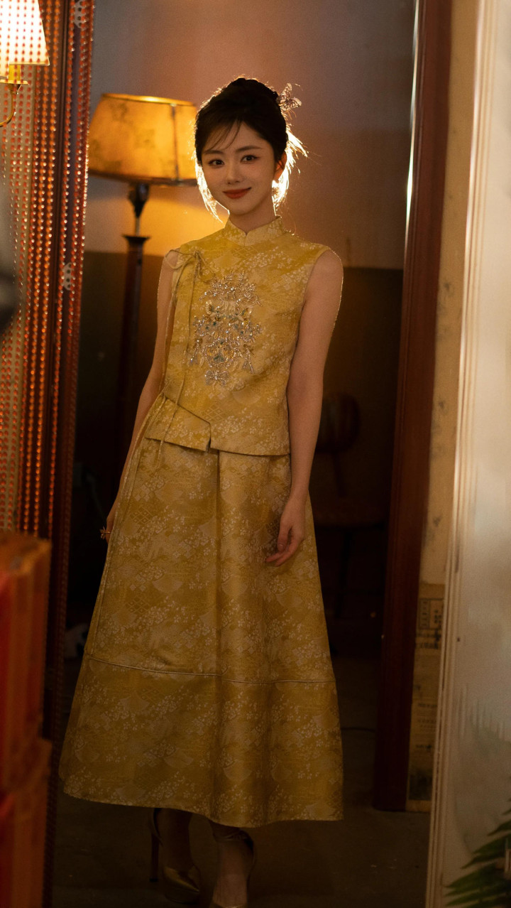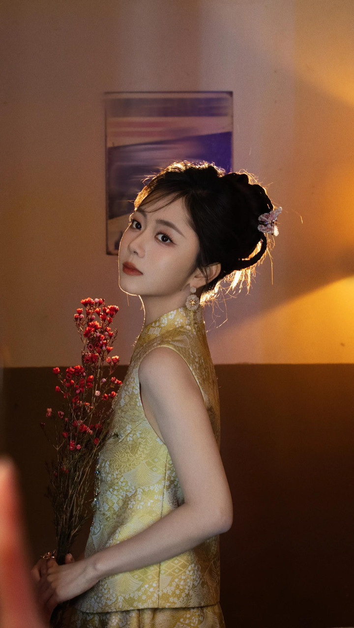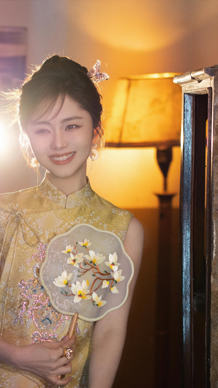 谭松韵复旧刺绣旗袍裙搭配盘发,身姿轻细瑰丽,五官精致漂亮,一对灵动双眸醒目着暖和的光线,甜好意思笑颜尽显青娥的芳华活力与俏皮可儿!