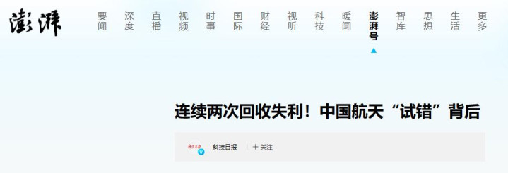 中国航天起步较晚,约略在短时候内兑现屡次回收实践,以致接近顺利,如故诟谇常了不得的配置。