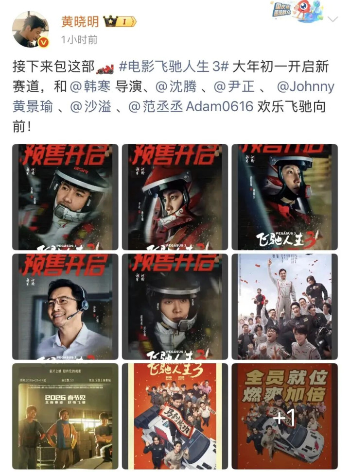 近日,演员黄晓明在微博连发5条微博,为网友奉上50场春节档不雅影票。