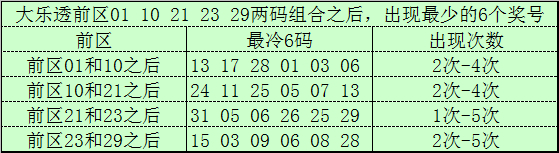 前区冷码统计:大乐透第26020期前区奖号为:01、10、21、23、29,规定第26020期历史上大乐透依然开出了2838期奖号了,在流畅两码奖号中: