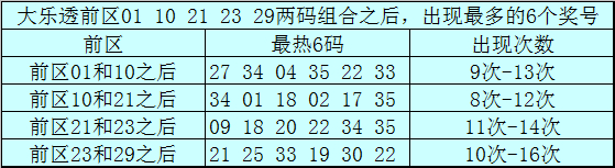前区两码21和23和之后发扬最热的6个号码为:09、18、20、22、34、35;