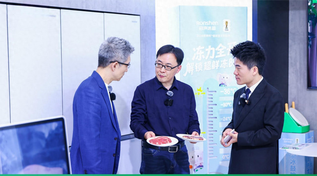容声雪柜食物保鲜巨匠栾福磊博士现场先容,容声“大冰象”雪柜的腰线有98cm,比平凡雪柜高15cm傍边,咱们形象地称它为“大长腿雪柜”。董宇辉敏锐地接话谈,腰线进步了,这意味着冷冻室的空间变大了。栾博士进一步阐释:这恰是容声针对中国度庭囤货需求所作念的“登科翻新”。