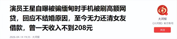 演员王星自曝被骗缅甸时手机被刷高额网贷,修起不成家原因,于今无力还清女友借钱,曾一天收入不到208元——大河报