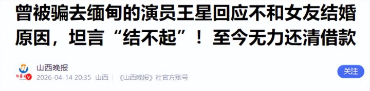 曾被骗去缅甸的演员王星修起不和女友成家原因,坦言“结不起”!于今无力还清借钱——山西晚报