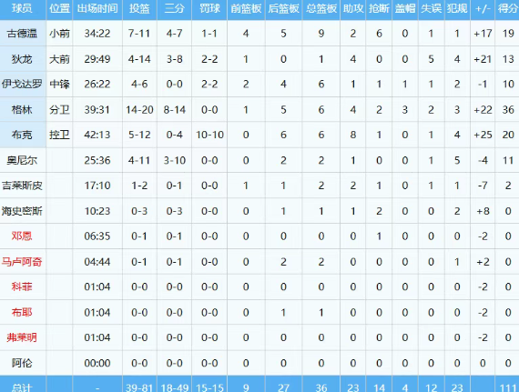 太阳队方面,杰伦格林此役默契号称惊艳,他20次动手射中14球,狂轰36分6篮板4助攻2抢断3盖帽,数据栏简直被填满。布克也保捏结识输出,他10罚全中,获取20分6篮板8助攻。值得一提的是,杰伦格林在靠近开荒者时,三分7中2获取35分5篮板2助攻;而此役靠近铁汉,他三分14中8,再次砍下36分6篮板4助攻。好意思媒Inside the sun发文盛赞:“杰伦-格林无疑是太阳附加赛中默契最为出色的球员。”