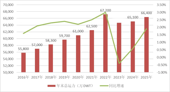 弃世2025年末,公司适度船队限制如下: