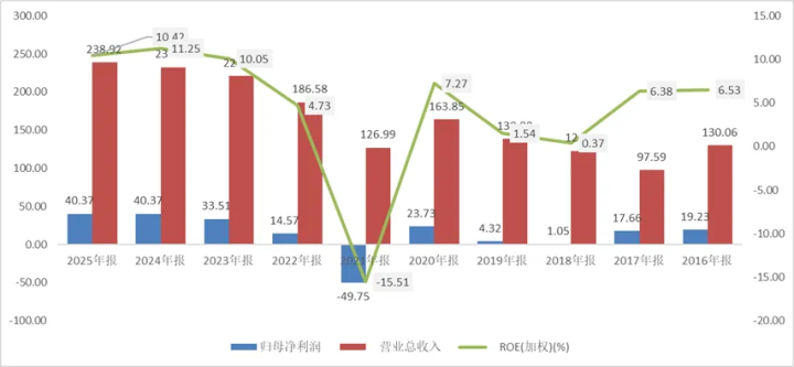 图:中远海能近十年营收、净利润、ROE(右轴)情况(单元:亿元,%)