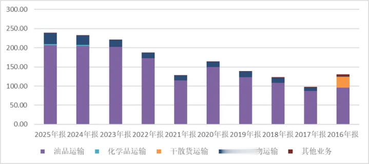 中远海能于2016年6月剥离干散货运送,同期收购大连远洋100%股权(注入油轮、LNG金钱),完成业务切换与公司改名。面前油品运送在营收中约占九成。