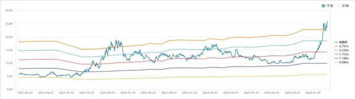 近5年PE/PBband,现时PE及PB均处于近5年偏高的区间