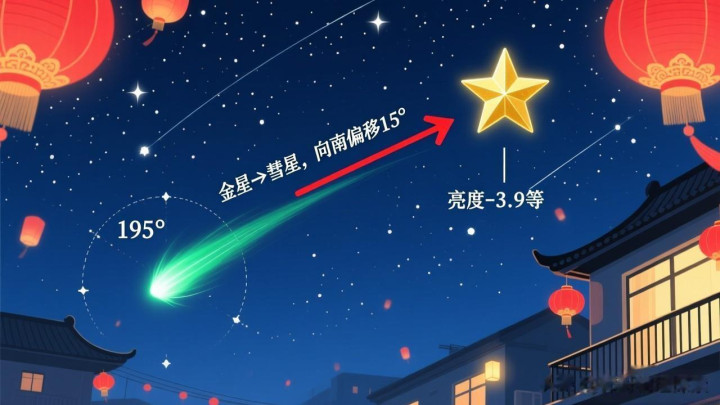 1️⃣ 先找最亮的"年星":日过期30分钟,西南边最亮的那颗星(亮度-3.9等),即是金星——它像大除夕夜桌上最亮的那盏红灯笼,领导标的。