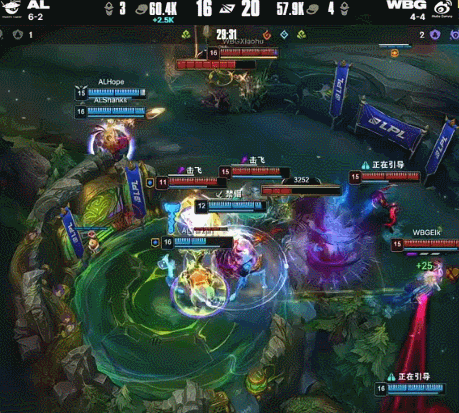 WBG后续团战开始出现问题,首先是上单Zika巨大优势打不出该有的效果,其次是AL的中野开团时机把握完美,配合女枪和洛的大招,还有红狗收割冲后排,AL在巨大劣势下完成了2换5的大逆转。