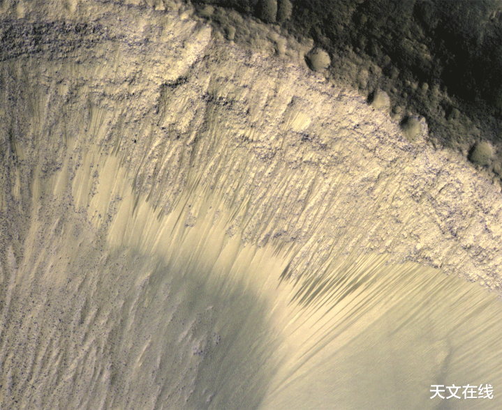季节性陡坡纹线,比如在梅拉斯峡谷谷底一座陨石坑朝南陡坡上的这条,不仅已被诠释会跟着时辰推移而滋长,然后跟着火星地貌被尘埃填满而冉冉灭绝,况兼已知是由含盐液态水流动变成的,因为干涸的水流会留住新的盐迹。在这些水流中,生命行动不仅也曾发生过,况兼跟着寝息的生物体被流动的液态水叫醒,也许如今仍在进行。 起原:好意思国国度航空航天局喷气鼓动实验室加州理工学院亚利桑那大学