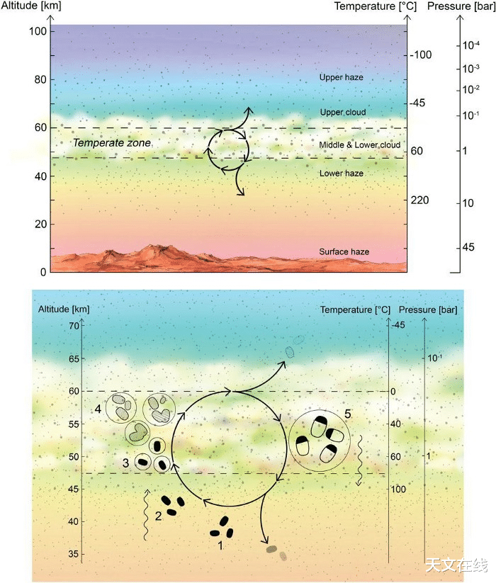 金星云层丰富的大气位于浓密、安闲且极热的上层之上。较低的云层要到海拔数十公里处才运转形成,并以多层体式握续存在,直到海拔约90公里处的最高雾霭。这些云层主要由硫酸组成,大略是金星大气中最显赫的特征,其里面发生着复杂的化学反应。起原:S.Seager等东说念主,《天体生物学》