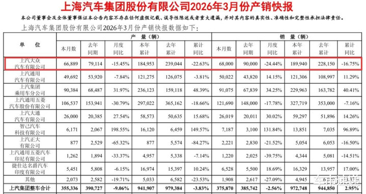 看成上汽集团的销量元勋之一,okooo澳客由奥迪、大众品牌、斯柯达构成的上汽大众,3月销量68000台,同比下滑24.44%,本年1-3月累计销量189940台,同比下滑16.75%。说真话,这一经是上汽大众连接多个月出现单月销量同比下滑了。
